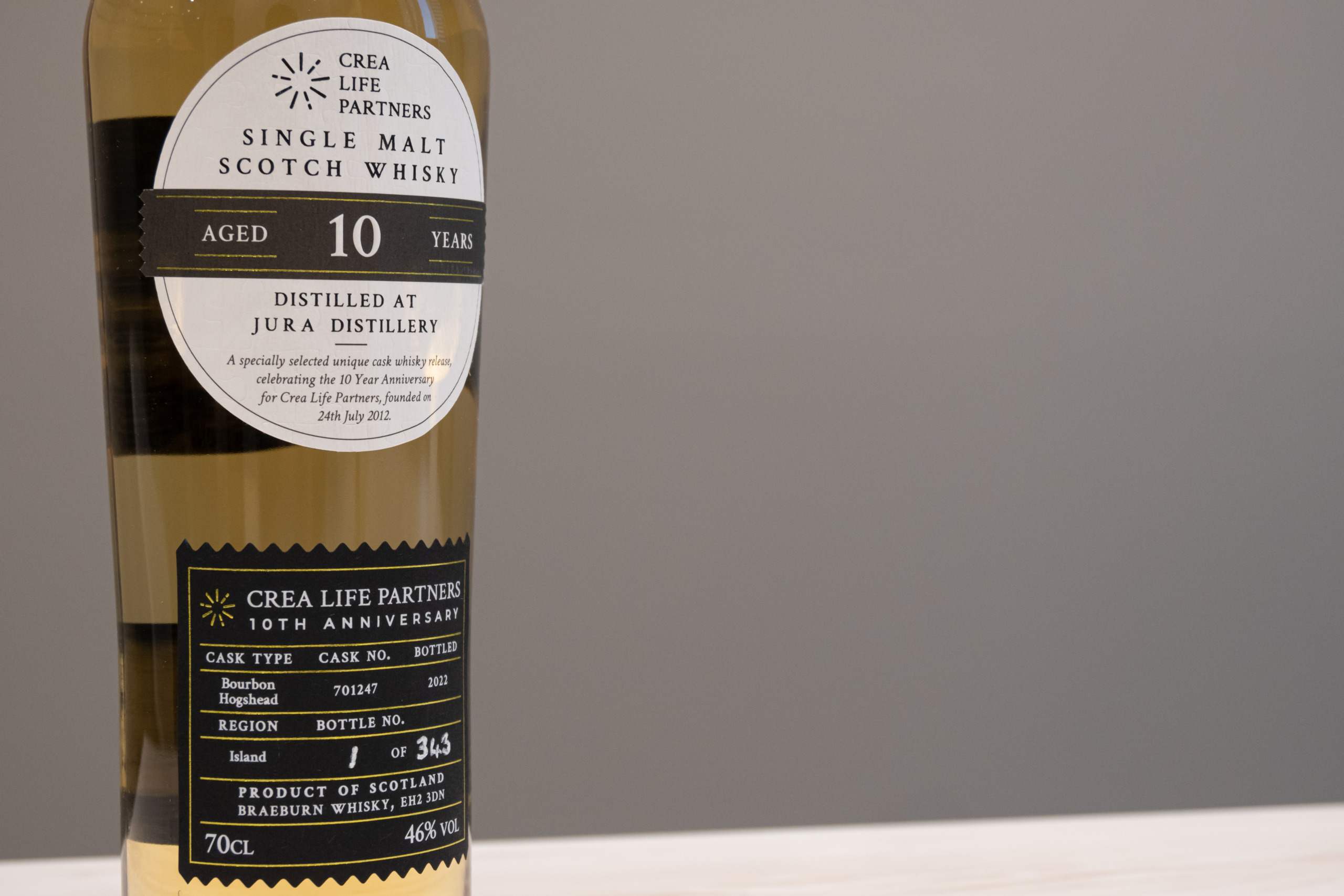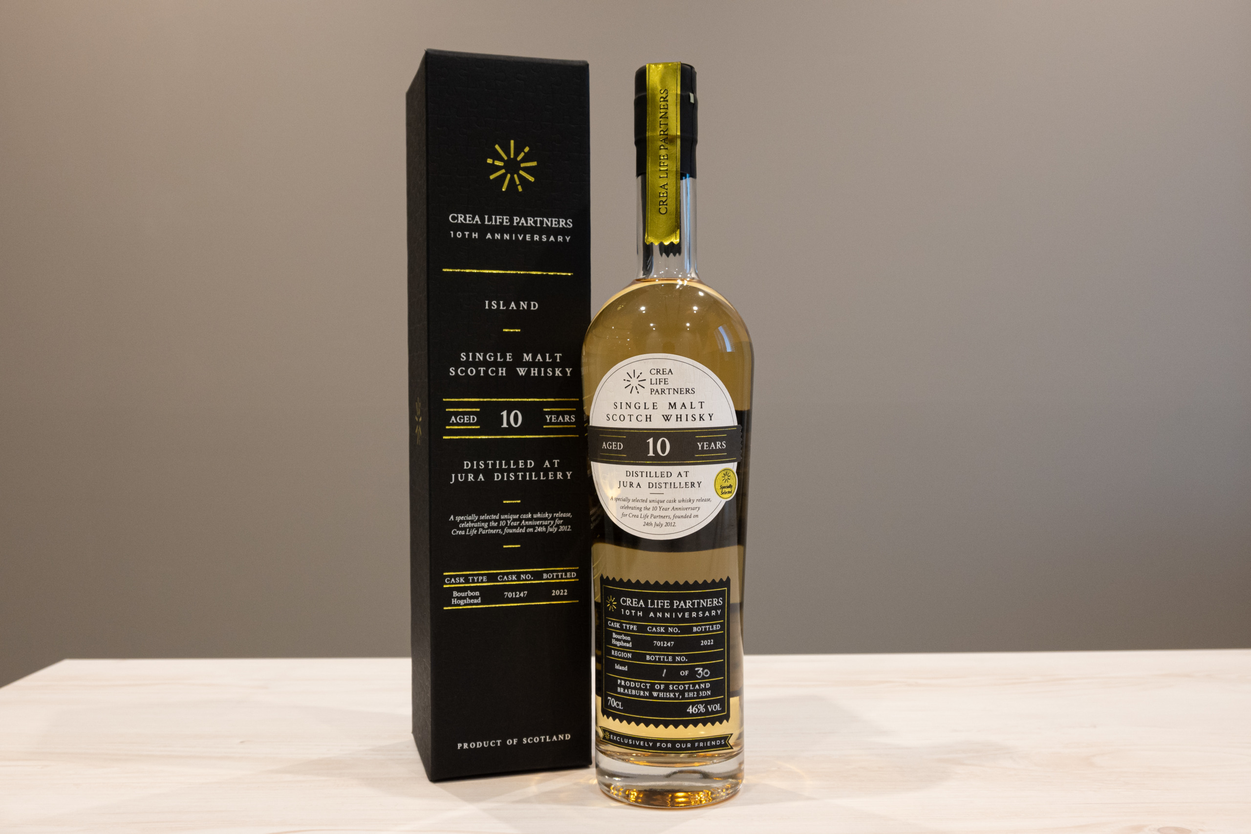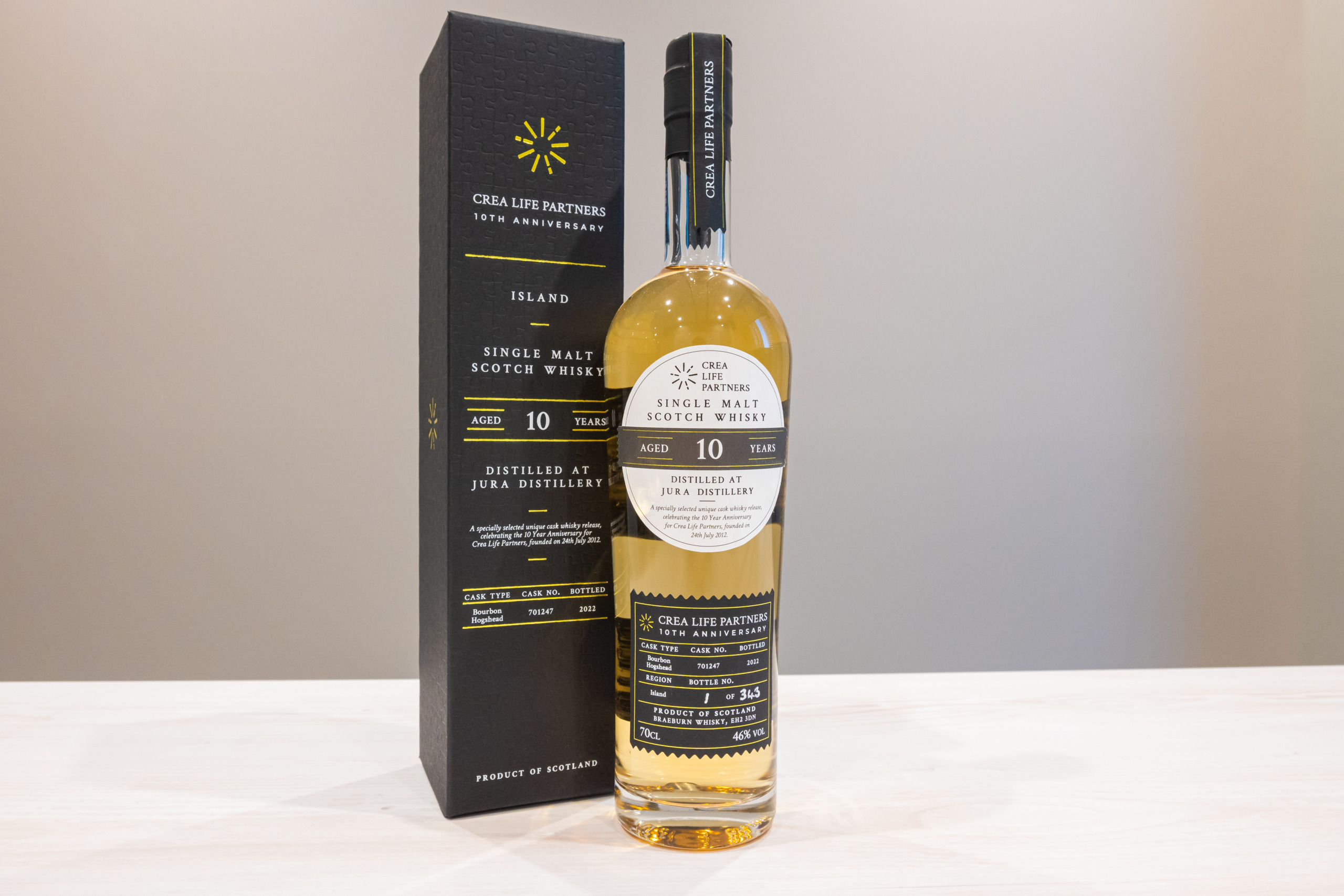 CLPと全く同じ事業を行なっている企業がない中only oneという部分に注目し、島に一つしか蒸留所がないジュラ島のジュラ蒸溜所を選び、10年熟成されたウイスキーを選ぶことで意味も込めた、こだわり抜いたボトルになっています。また、ジュラ島が位置している海辺によって塩味がほのかに薫るウイスキーとなっている部分もこだわりですね。